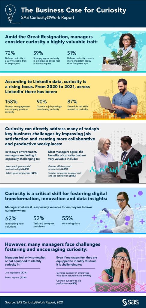 Drei von vier Führungskräften in Unternehmen weltweit sehen Neugier als sehr wertvolle Eigenschaft bei Mitarbeitern, 59…